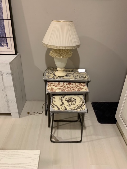 ![]() | I tre tavolini da salotto a scomparsa, sono un classico senza tempo, ma questa versione decorata diversamente a seconda della misura è davvero singolare. Una peculiarità che, sono certa, apprezzerete in quanto consente un facile inserimento sia per modello sia per colore | |