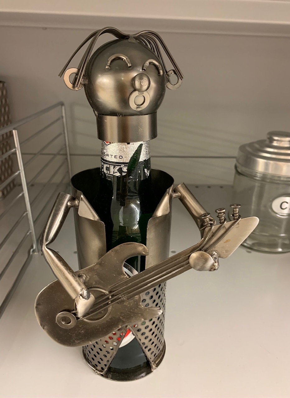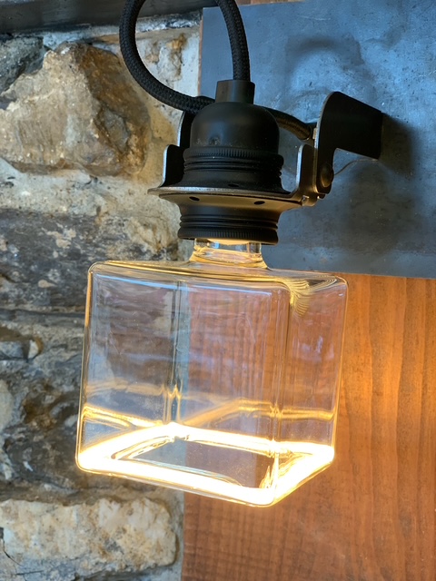 | Il bottiglione trasformato in lampada è di grande tendenza, soprattutto se, a posto del classico paralume, inserite una "mega lampadina" argentata | ||