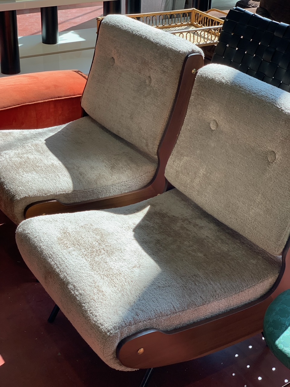 | Le poltrone vintage senza bracciolo, tipiche degli anni '60, stanno benissimo nei salotti moderni. Un contrasto talmente evidente da risultare armonico ed equilibrato | ||