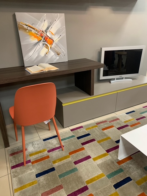 | Un tappeto colorato richiama un ambiente multicolor. Giallo, arancione, celeste e fucsia si alternano in una sinfonia di nuance, per vivacizzare la casa con brio e disinvoltura | ||