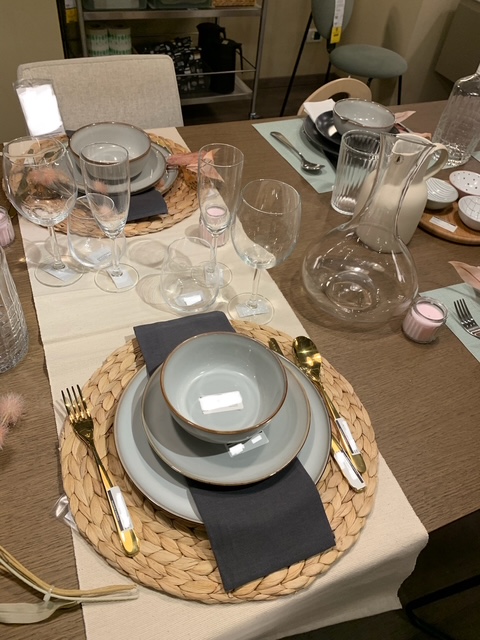 tavola grande consente un'apparecchiatura completa. Runner, tovagliette, sottopiatto, ciotola, piatto da pietanza, caraffe e posate, tutto pronto per una cena importante in famiglia o tra amici | |
