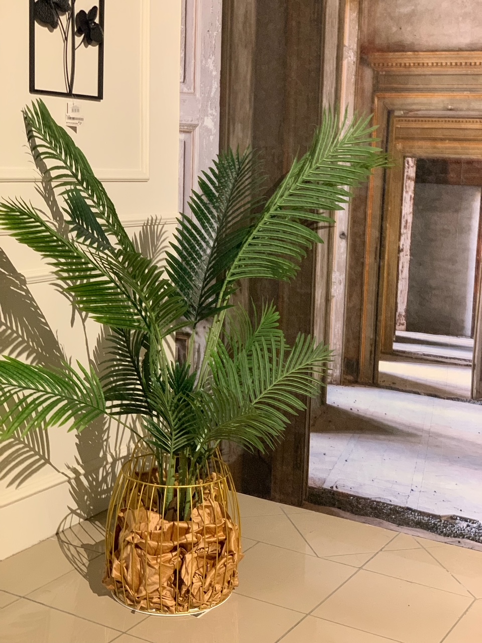 | Il vaso a cesta in metallo è molto accattivante. Per renderlo ancor più scenografico vi consiglio di avvolgere la pianta in una carta gold e di stropicciarla in modo creativo per riempire, con estro, gli spazi vuoti | ||